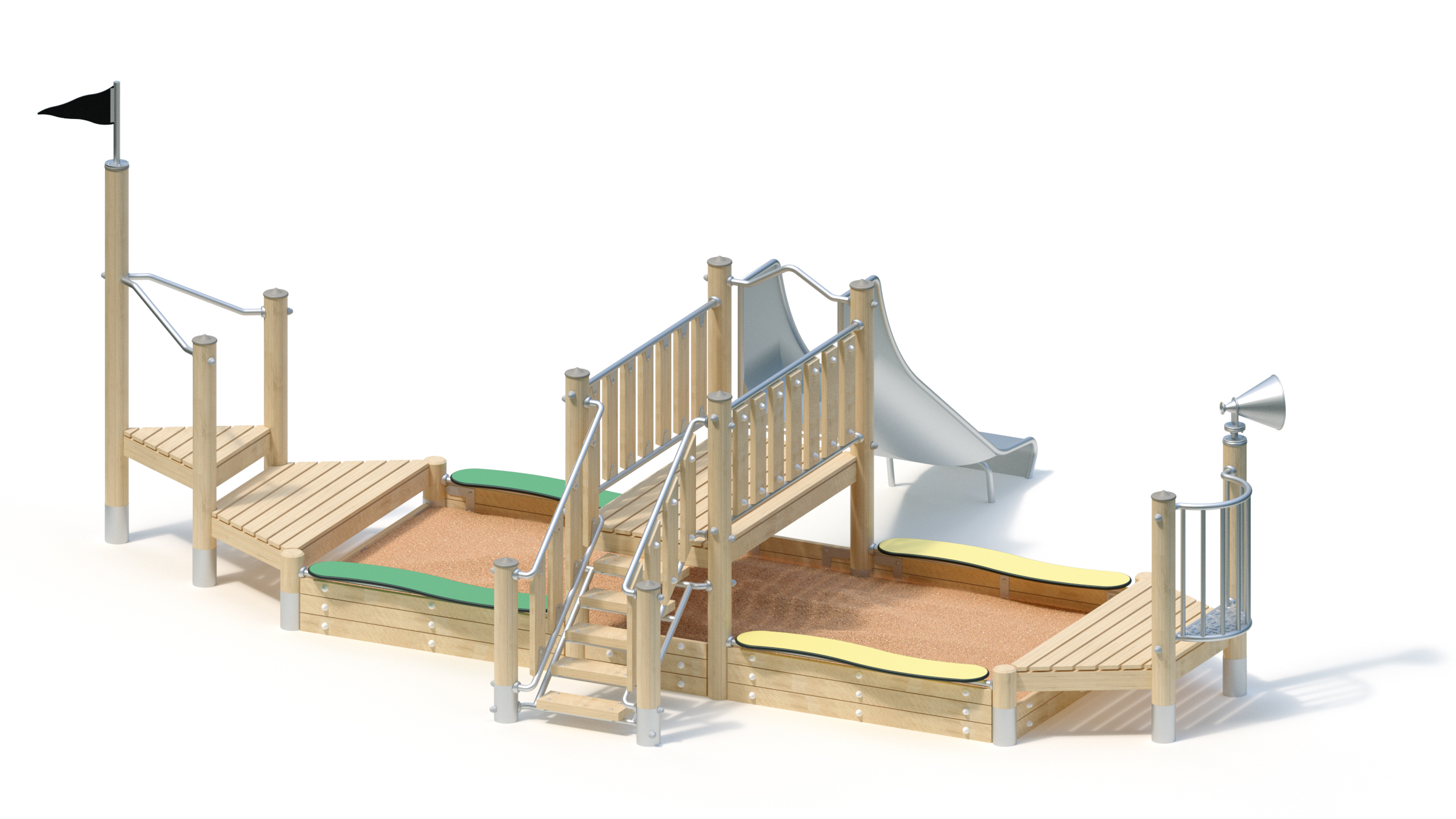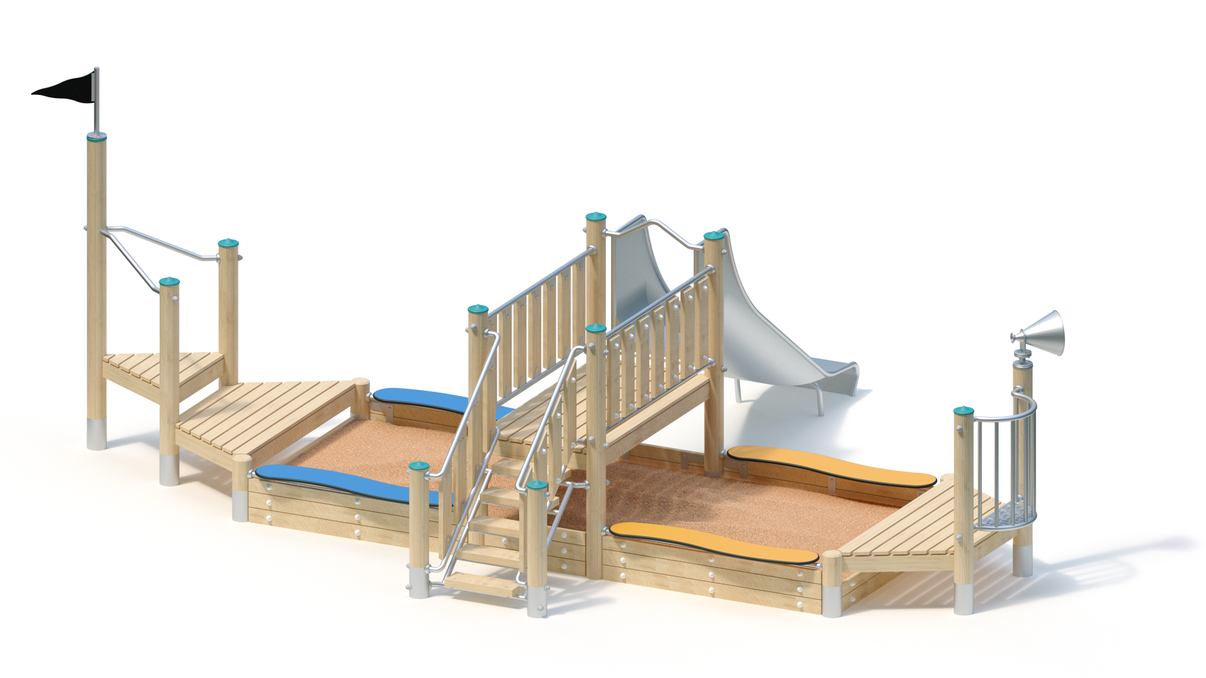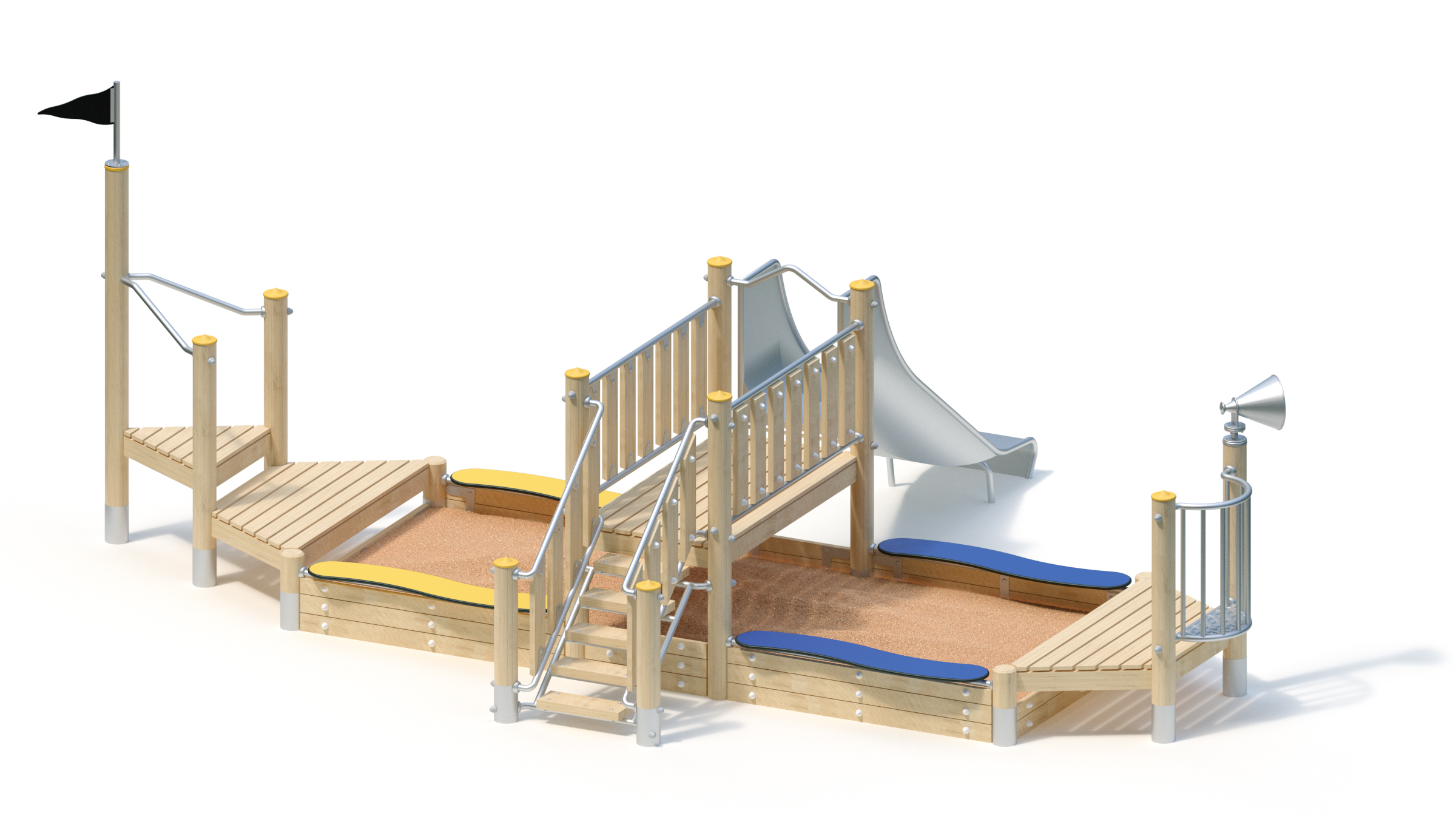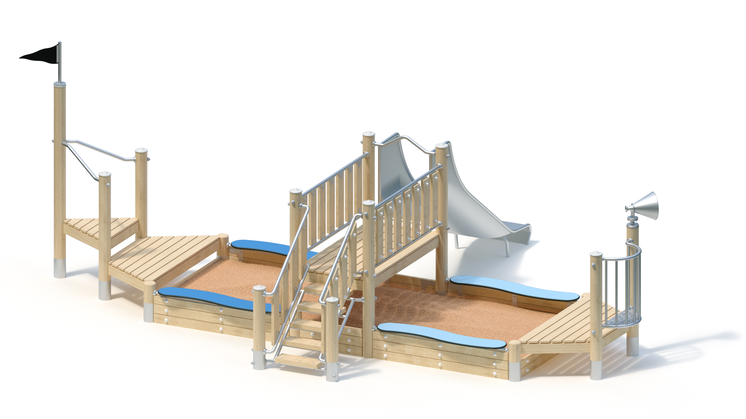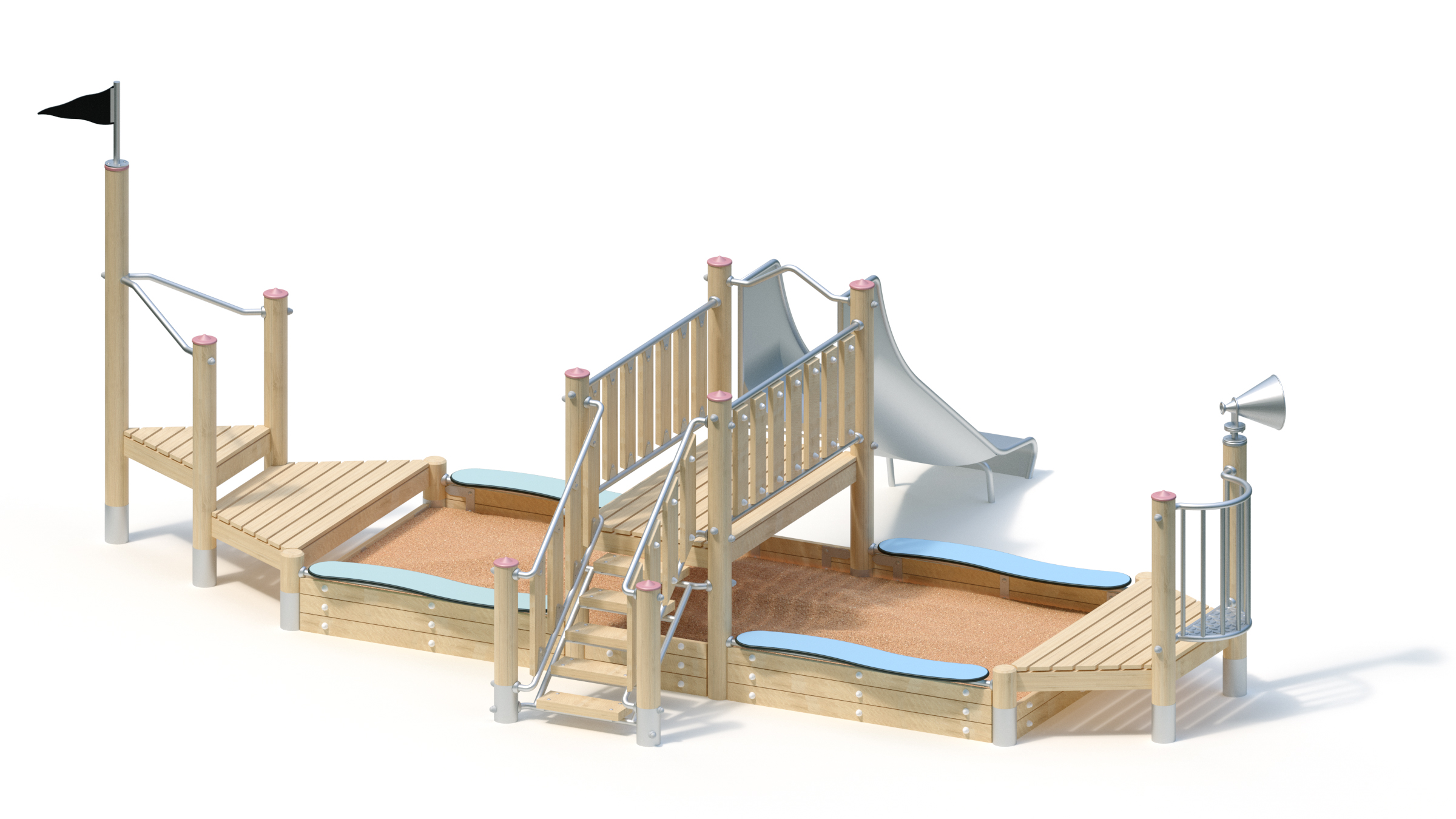 Hiekkalaatikko laiva liukumäellä